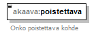 | source | <xs:element name="poistettava" type="xs:boolean"> <xs:annotation> <xs:documentation>Onko poistettava kohde</xs:documentation> </xs:annotation> </xs:element> |