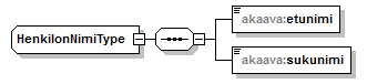 | source | <xs:complexType name="HenkilonNimiType"> <xs:sequence> <xs:element name="etunimi" type="xs:string"/> <xs:element name="sukunimi" type="xs:string"/> </xs:sequence> </xs:complexType> |