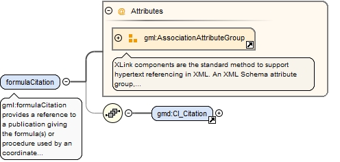 <element name="formulaCitation"><annotation><documentation>gml:formulaCitation provides a reference to a publication giving the formula(s) or procedure used by an coordinate operation method.</documentation></annotation><complexType><sequence minOccurs="0"><element ref="gmd:CI_Citation"/></sequence><attributeGroup ref="gml:AssociationAttributeGroup"/></complexType></element>