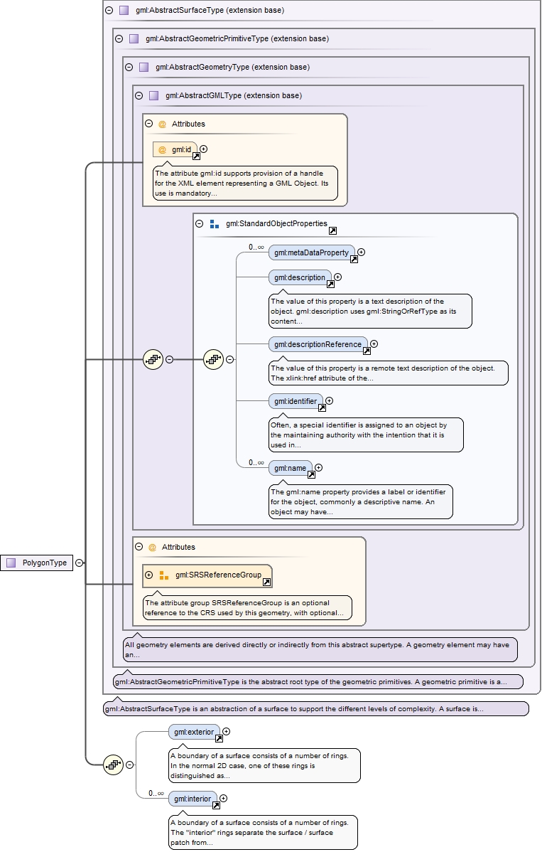 <complexType name="AbstractSurfaceType" abstract="true"><annotation><documentation>gml:AbstractSurfaceType is an abstraction of a surface to support the different levels of complexity. A surface is always a continuous region of a plane.</documentation></annotation><complexContent><extension base="gml:AbstractGeometricPrimitiveType"/></complexContent></complexType>