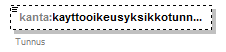 | source | <xs:element name="kayttooikeusyksikkotunnus" type="xs:string" minOccurs="0"> <xs:annotation> <xs:documentation>Tunnus</xs:documentation> </xs:annotation> </xs:element> |