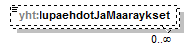 | source | <xs:element name="lupaehdotJaMaaraykset" type="xs:string" minOccurs="0" maxOccurs="unbounded"/> |