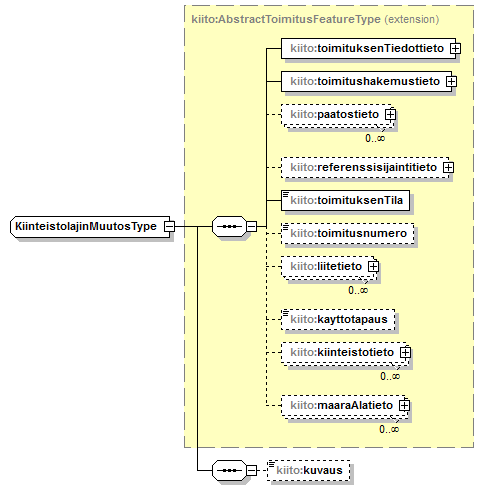 | children | kiito:toimituksenTiedottieto kiito:toimitushakemustieto kiito:paatostieto kiito:referenssisijaintitieto kiito:toimituksenTila kiito:toimitusnumero kiito:liitetieto kiito:kayttotapaus kiito:kiinteistotieto kiito:maaraAlatieto kiito:kayttooikeustieto | ||||