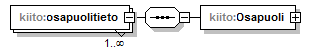 | source | <xs:element name="osapuolitieto" maxOccurs="unbounded"> <xs:complexType> <xs:sequence> <xs:element name="Osapuoli" type="kiito:OsapuoliType"/> </xs:sequence> </xs:complexType> </xs:element> |