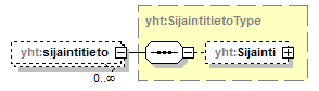| source | <xs:element name="sijaintitieto" maxOccurs="unbounded"> <xs:complexType> <xs:sequence> <xs:element name="Sijainti" type="yht:SijaintiType" minOccurs="0"/> </xs:sequence> </xs:complexType> </xs:element> |