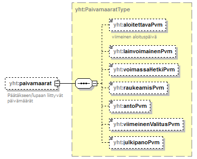 <xs:documentation>Päätäkseen/lupaan liittyvät päivämäärät</xs:documentation>