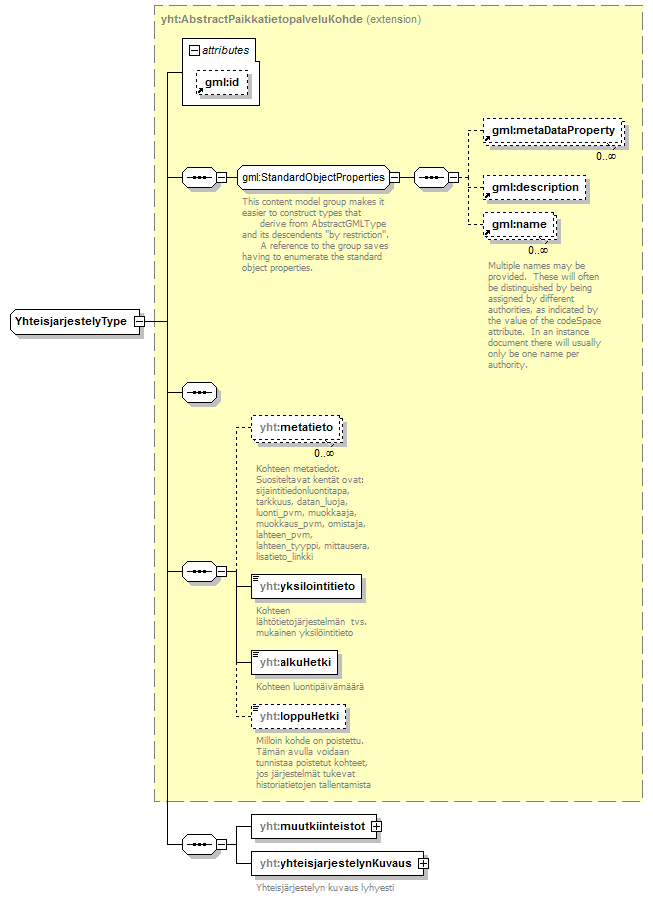 | children | gml:metaDataProperty gml:description gml:name yht:metatieto yht:yksilointitieto yht:alkuHetki yht:loppuHetki yht:muutkiinteistot yht:yhteisjarjestelynKuvaus | ||||||||||||