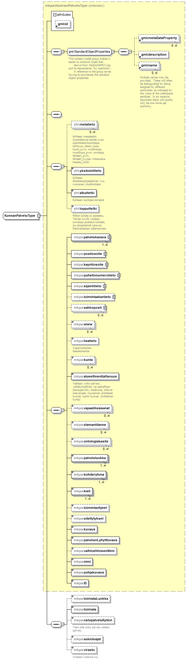 children gml:metaDataProperty gml:description gml:name yht:metatieto yht:yksilointitieto yht:alkuHetki yht:loppuHetki mkpa:palvelukanava mkpa:postiosoite mkpa:kayntiosoite mkpa:puhelinnumerotieto mkpa:sijaintitieto mkpa:toimintaaluetieto mkpa:sahkoposti mkpa:www mkpa:lisatieto mkpa:kunta mkpa:alueellinenKattavuus mkpa:vapaatAsiasanat mkpa:elamantilanne mkpa:ontologiakasite mkpa:palveluluokka mkpa:kohderyhma mkpa:kieli mkpa:toimintaohjeet mkpa:edellytykset mkpa:kuvaus mkpa:palvelunLyhytKuvaus mkpa:vaihtoehtoinenNimi mkpa:nimi mkpa:pohjakuvaus mkpa:ID mkpa:toimialaLuokka mkpa:toimiala mkpa:ostopalveluKytkin mkpa:aukioloajat mkpa:virasto