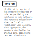 | source | <xs:element name="version" type="string"> <xs:annotation> <xs:documentation>Identifier of the version of the associated codeSpace or code, as specified by the codeSpace or code authority. This version is included only when the "code" or "codeSpace" uses versions. When appropriate, the version is identified by the effective date, coded using ISO 8601 date format.</xs:documentation> </xs:annotation> </xs:element> |