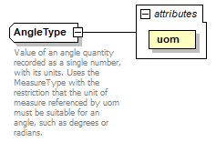 | source | <xs:complexType name="AngleType"> <xs:annotation> <xs:documentation>Value of an angle quantity recorded as a single number, with its units. Uses the MeasureType with the restriction that the unit of measure referenced by uom must be suitable for an angle, such as degrees or radians.</xs:documentation> </xs:annotation> <xs:simpleContent> <xs:restriction base="gml:MeasureType"/> </xs:simpleContent> </xs:complexType> |