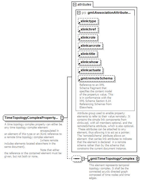 | source | <xs:complexType name="TimeTopologyComplexPropertyType"> <xs:annotation> <xs:documentation>A time topology complex property can either be any time topology complex element encapsulated in an element of this type or an XLink reference to a remote time topology complex element (where remote includes elements located elsewhere in the same document). Note that either the reference or the contained element must be given, but not both or none.</xs:documentation> </xs:annotation> <xs:sequence minOccurs="0"> <xs:element ref="gml:TimeTopologyComplex"/> </xs:sequence> <xs:attributeGroup ref="gml:AssociationAttributeGroup"/> </xs:complexType> |