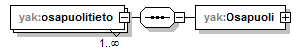 | source | <xs:element name="osapuolitieto" maxOccurs="unbounded"> <xs:complexType> <xs:sequence> <xs:element name="Osapuoli" type="yak:YleisenAlueenOsapuoliType"/> </xs:sequence> </xs:complexType> </xs:element> |