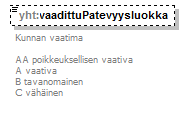 | source | <xs:simpleType name="PatevyysluokkaType"> <xs:annotation> <xs:documentation>Pätevyys: AA poikkeuksellisen vaativa A vaativa B tavanomainen C vähäinen</xs:documentation> </xs:annotation> <xs:restriction base="xs:string"> <xs:enumeration value="AA"/> <xs:enumeration value="A"/> <xs:enumeration value="B"/> <xs:enumeration value="C"/> <xs:enumeration value="ei tiedossa"/> </xs:restriction> </xs:simpleType> |