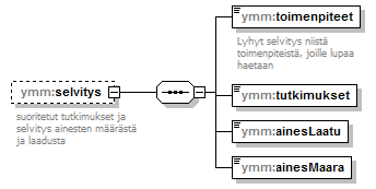 | children | yht:metatieto yht:yksilointitieto yht:alkuHetki yht:loppuHetki ymm:kasittelytietotieto ymm:luvanTunnistetiedot ymm:lausuntotieto ymm:paatostieto ymm:hakemustieto ymm:valvontakohdetieto ymm:valvontatapahtumattieto ymm:sijaintitieto | ||||