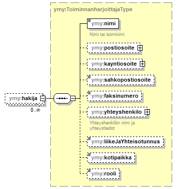 | children | yht:henkilotunnus yht:sukunimi yht:etunimi yht:yTunnus yht:yrityksenNimi yht:yhteyshenkilonNimi yht:osoitetieto yht:puhelinnumero yht:sahkopostiosoite yht:suoramarkkinointikielto | ||