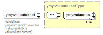 | source | <xs:complexType name="YmparistoPaatosType"> <xs:sequence> <xs:element name="takuuaikaPaivat" type="xs:int" minOccurs="0"/> <xs:element name="lupaehdotJaMaaraykset" type="xs:string" minOccurs="0" maxOccurs="unbounded"/> <xs:element name="paatoslinkki" type="xs:string" minOccurs="0"/> <xs:element name="paatosdokumentinPvm" type="xs:date" minOccurs="0"/> <xs:element name="liitetieto" minOccurs="0" maxOccurs="unbounded"> <xs:complexType> <xs:sequence> <xs:element name="Liite" type="yht:YmparistoLiiteType"/> </xs:sequence> </xs:complexType> </xs:element> </xs:sequence> </xs:complexType> |