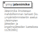 | source | <xs:element name="KierratettyJate" type="ymy:KierratettyJateType" minOccurs="0"> <xs:annotation> <xs:documentation>Omassa toiminnassa hyödynnetyt ja käsitellyt jätteet</xs:documentation> </xs:annotation> </xs:element> |