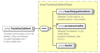 | source | <xs:element name="TuotetutJatteet" type="ymy:TuotetutJatteetType" minOccurs="0"> <xs:annotation> <xs:documentation>Omassa toiminnassa syntyvät jätteet, jotka toimitetaan muualle käsiteltäviksi / hyödynnettäviksi</xs:documentation> </xs:annotation> </xs:element> |