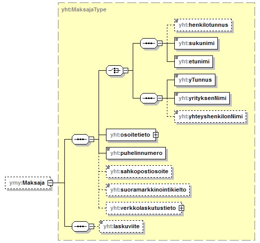 | children | yht:henkilotunnus yht:sukunimi yht:etunimi yht:yTunnus yht:yrityksenNimi yht:yhteyshenkilonNimi yht:osoitetieto yht:puhelinnumero yht:sahkopostiosoite yht:suoramarkkinointikielto yht:verkkolaskutustieto yht:laskuviite | ||||||||